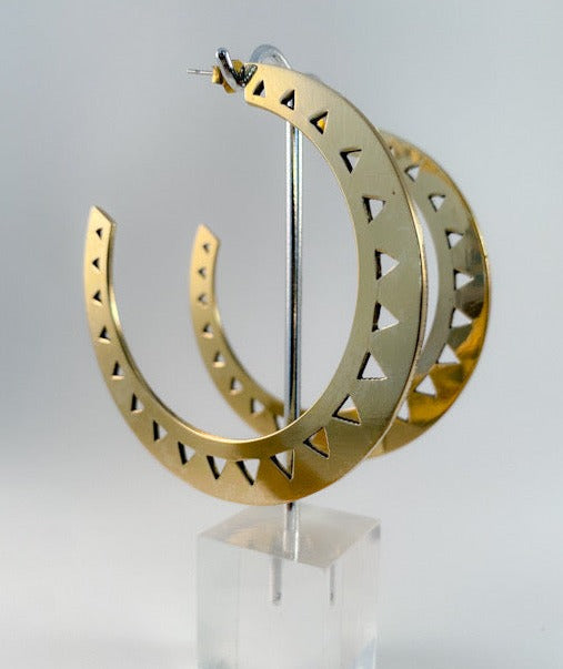 Polished brass hoop earrings with triangle cut outs