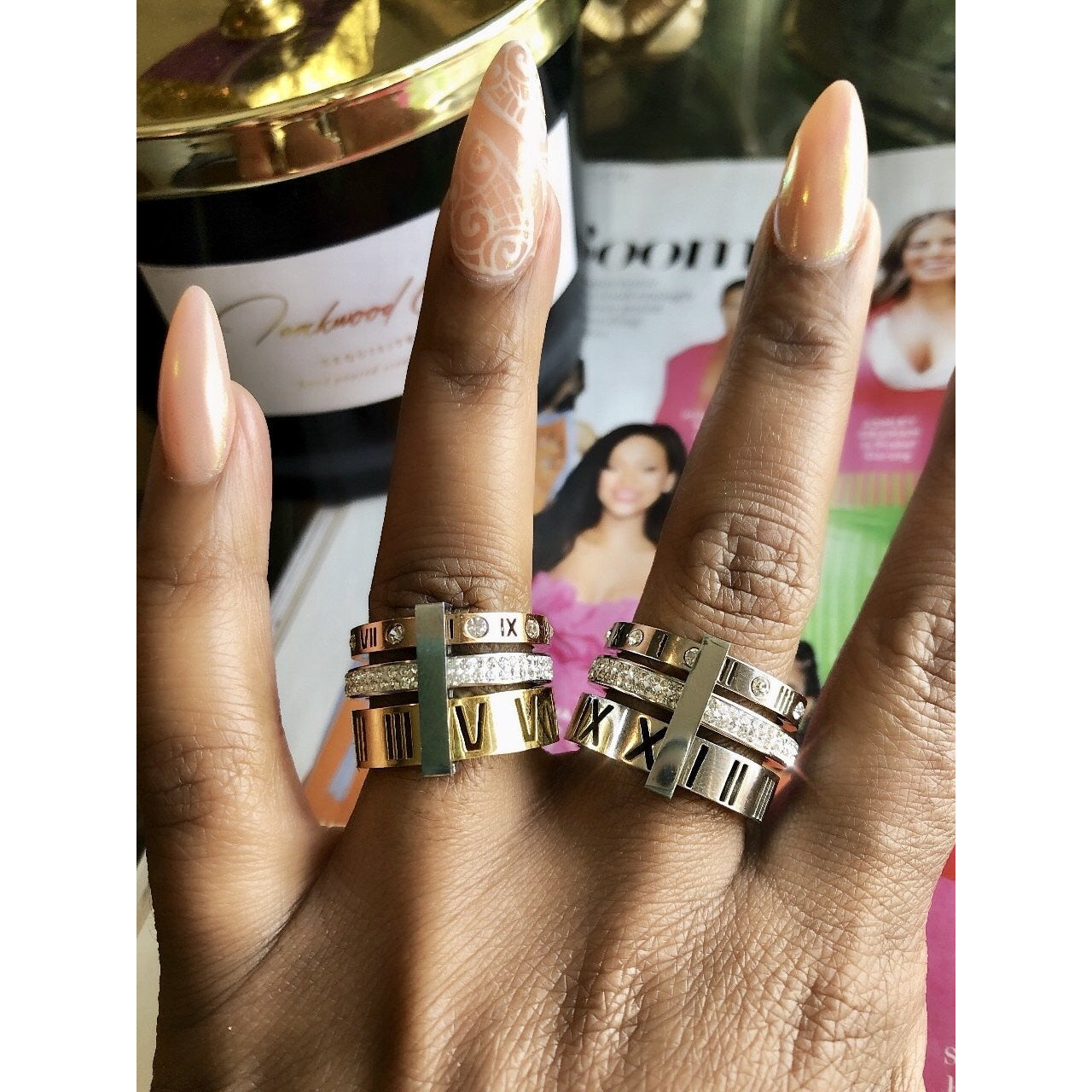 Classy Roman Ring. Roman numeral 3 layered with crystals. Tarnish Free